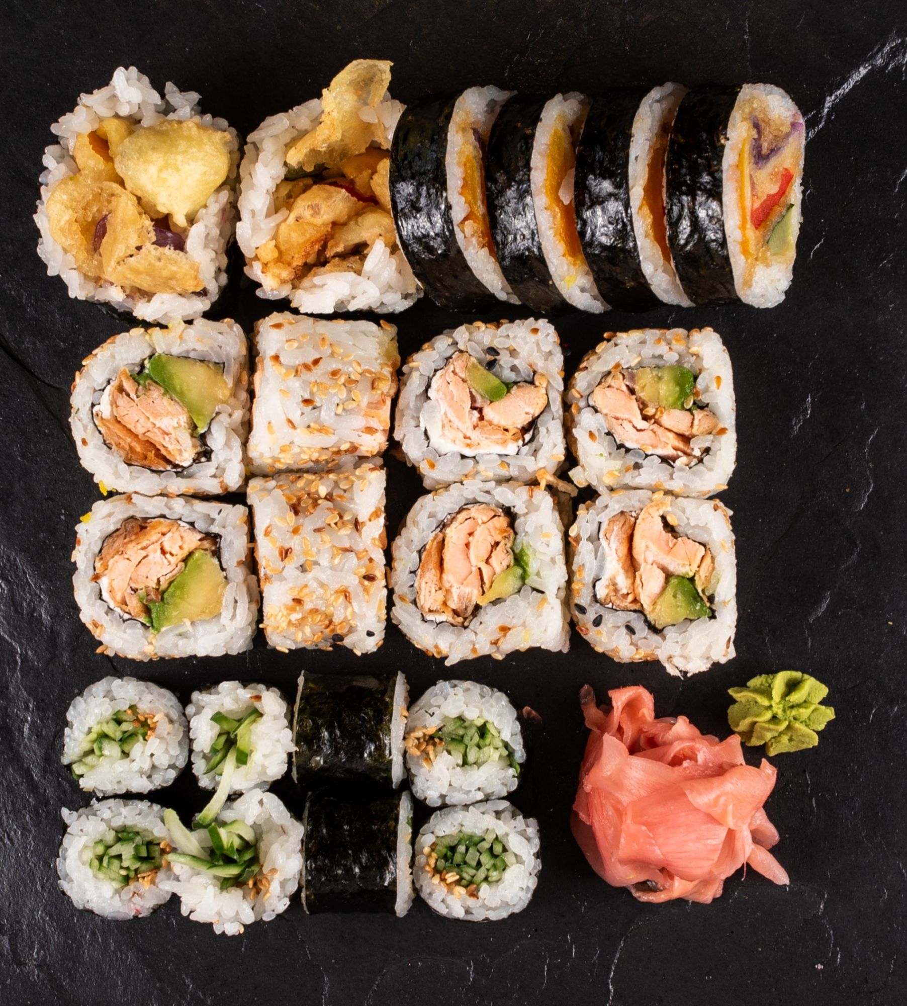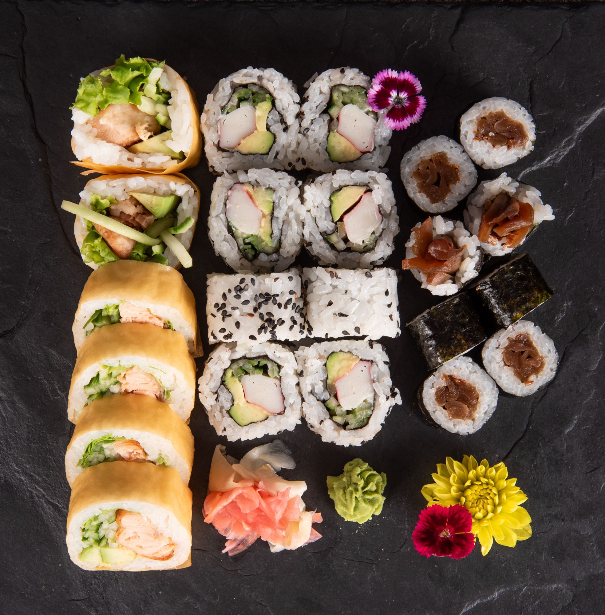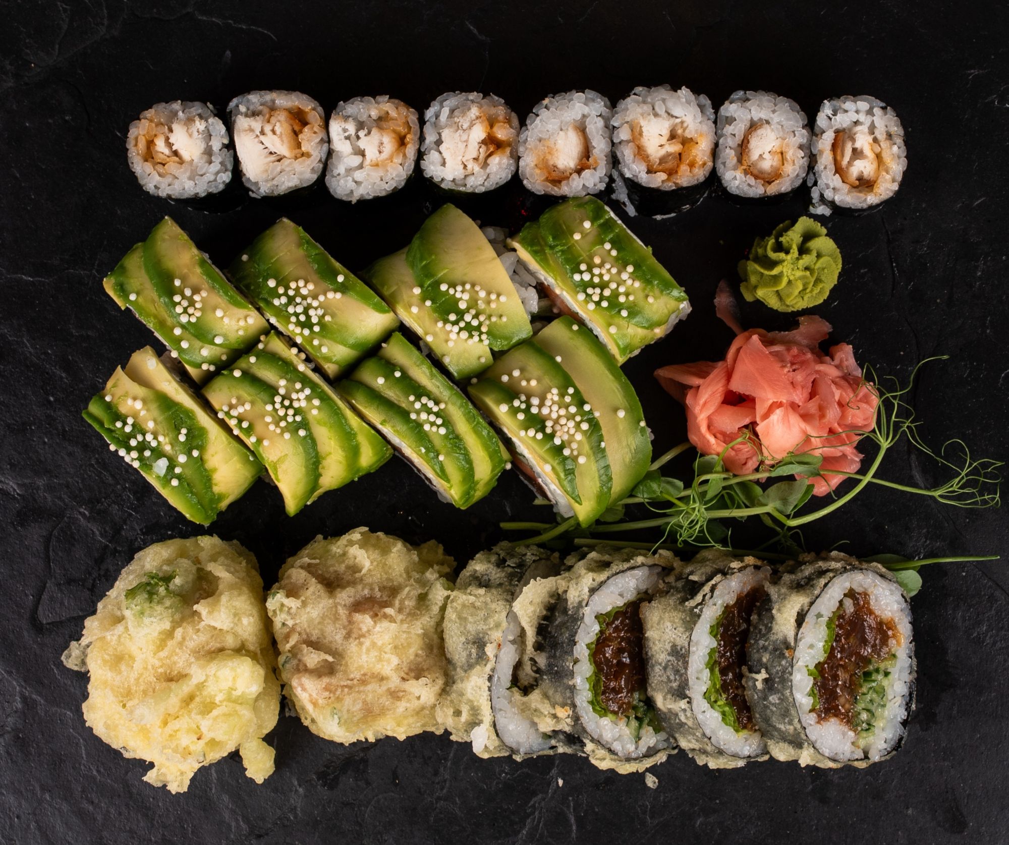 kizami, awokado, rzodkiew marynowana, ogórek, serek