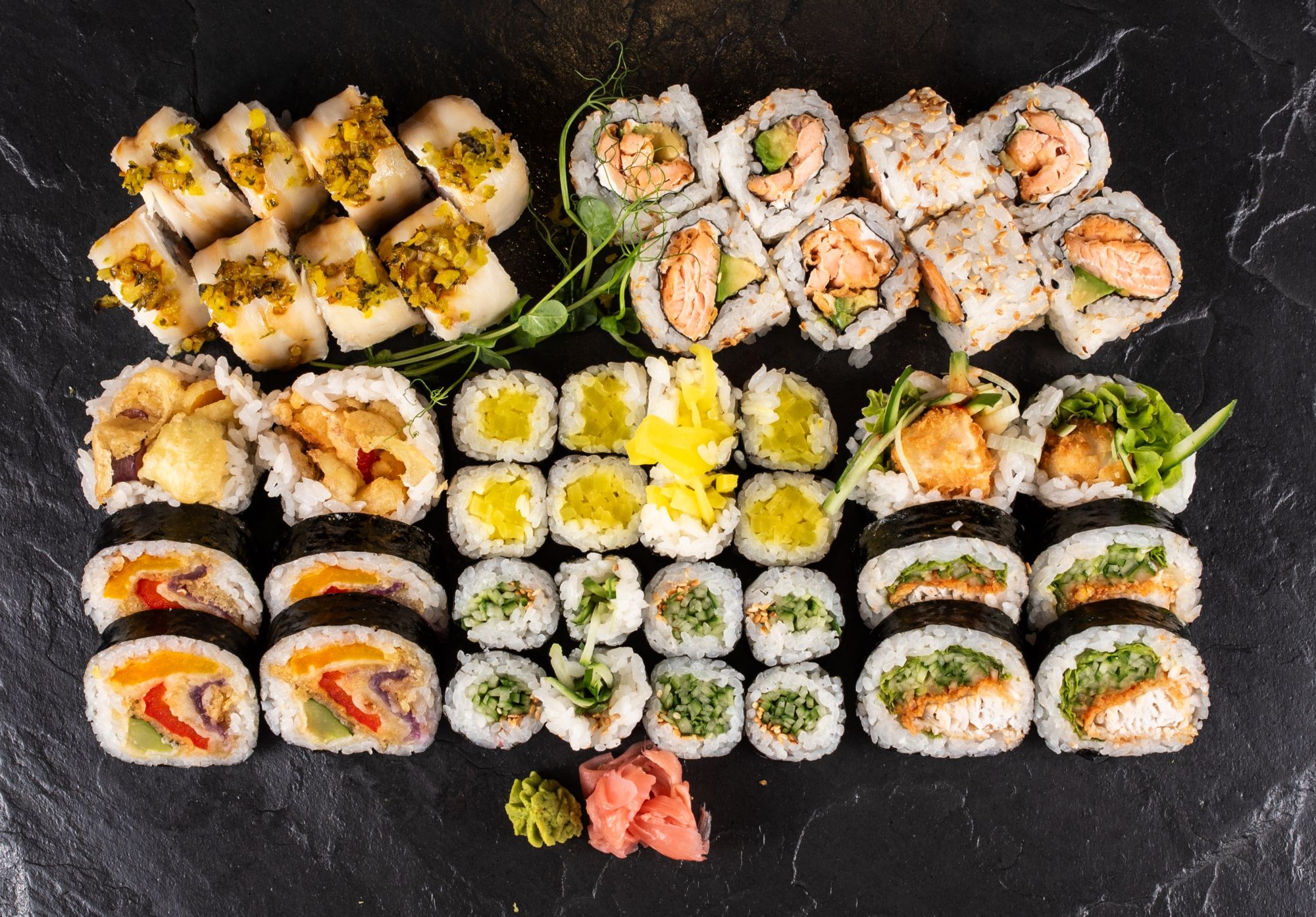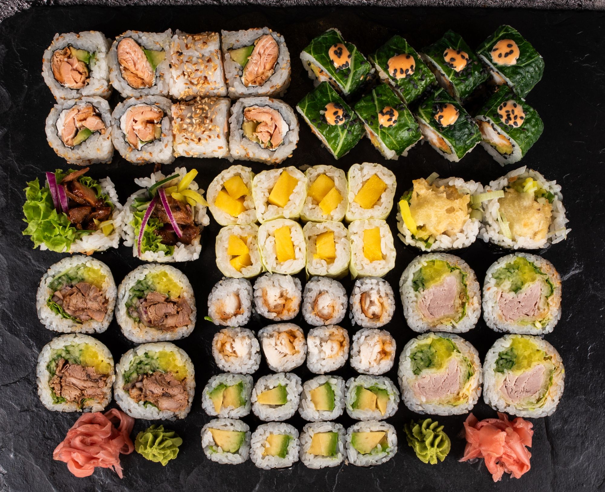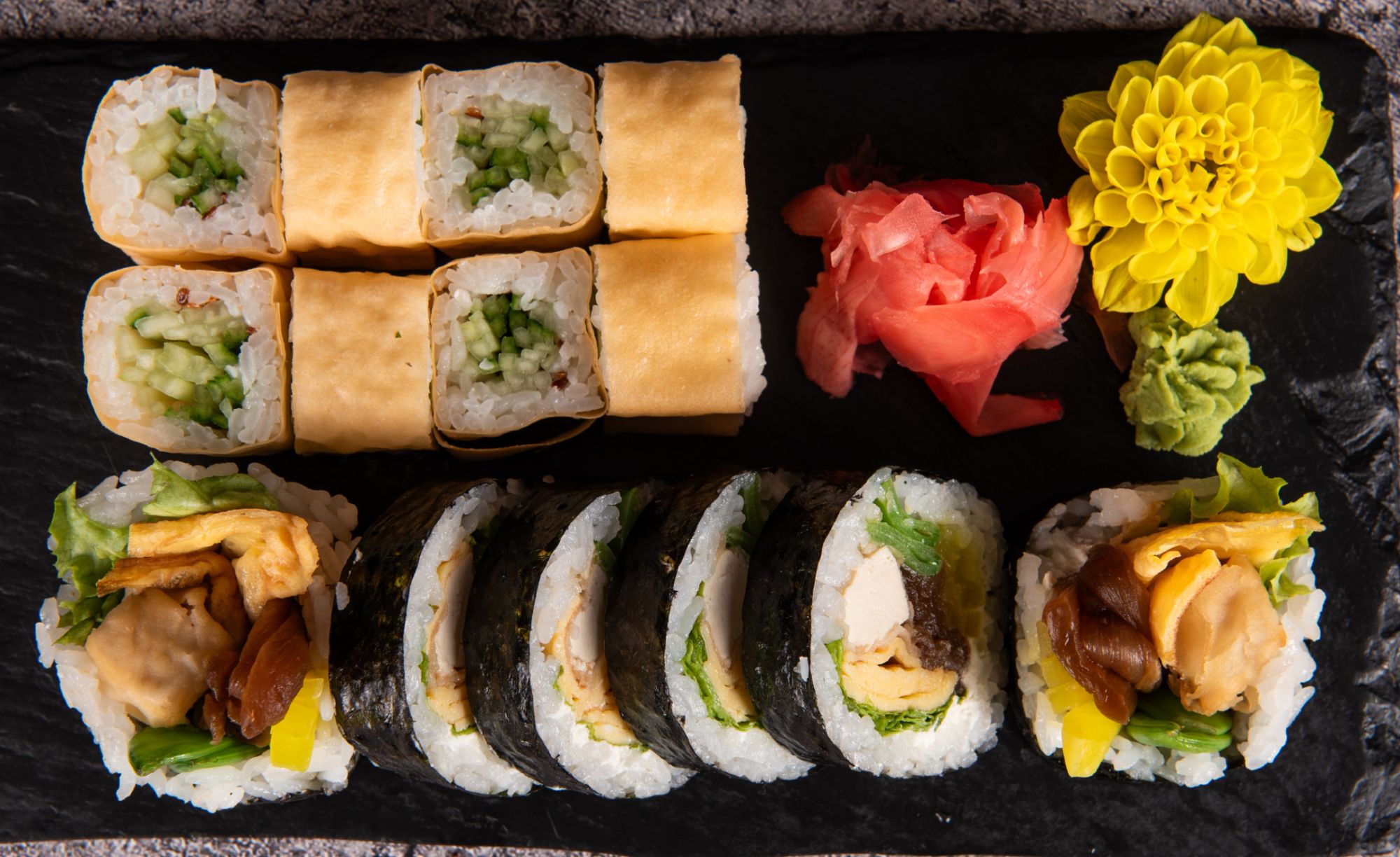 kizami, awokado, rzodkiew marynowana, ogórek, serek