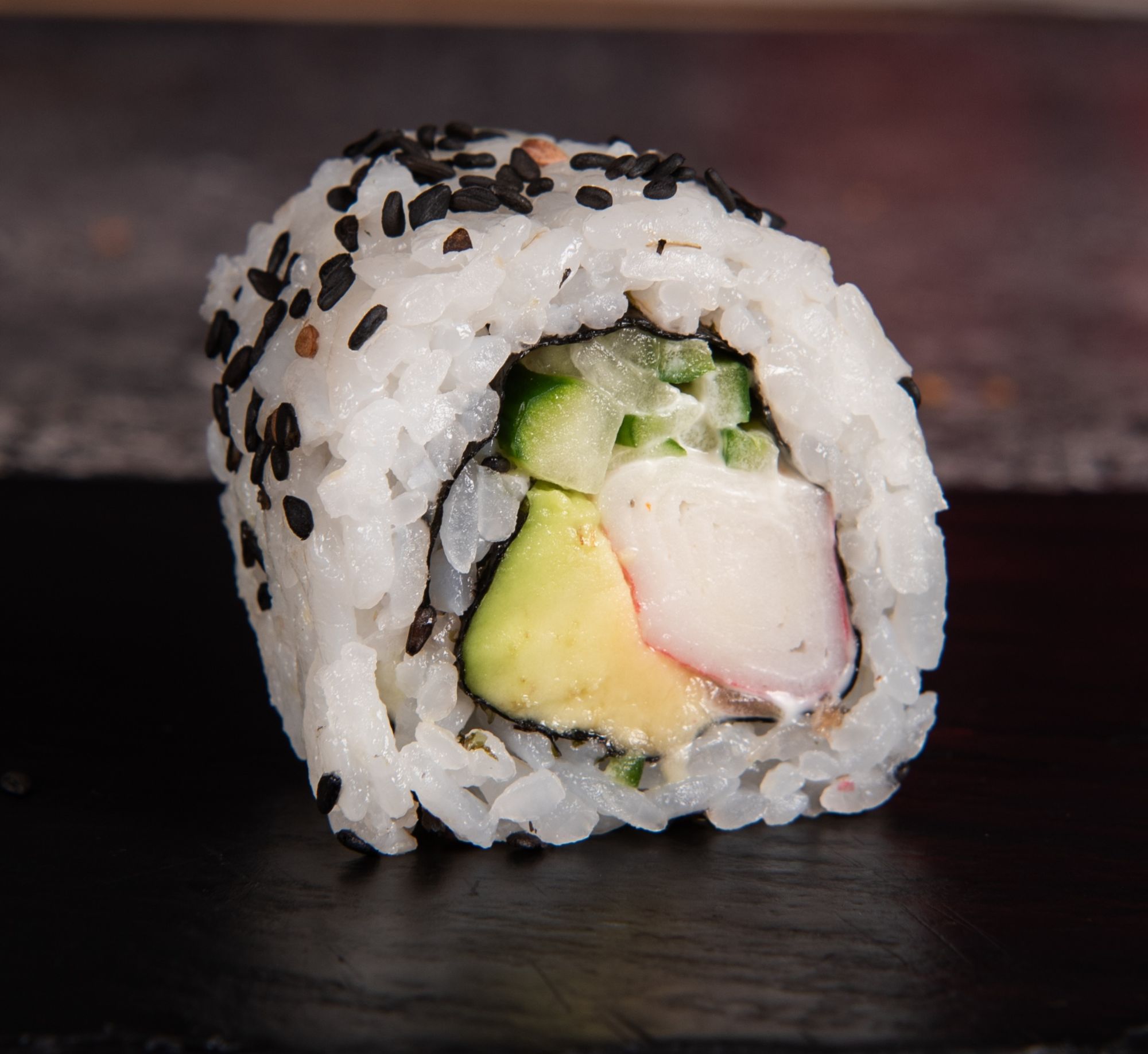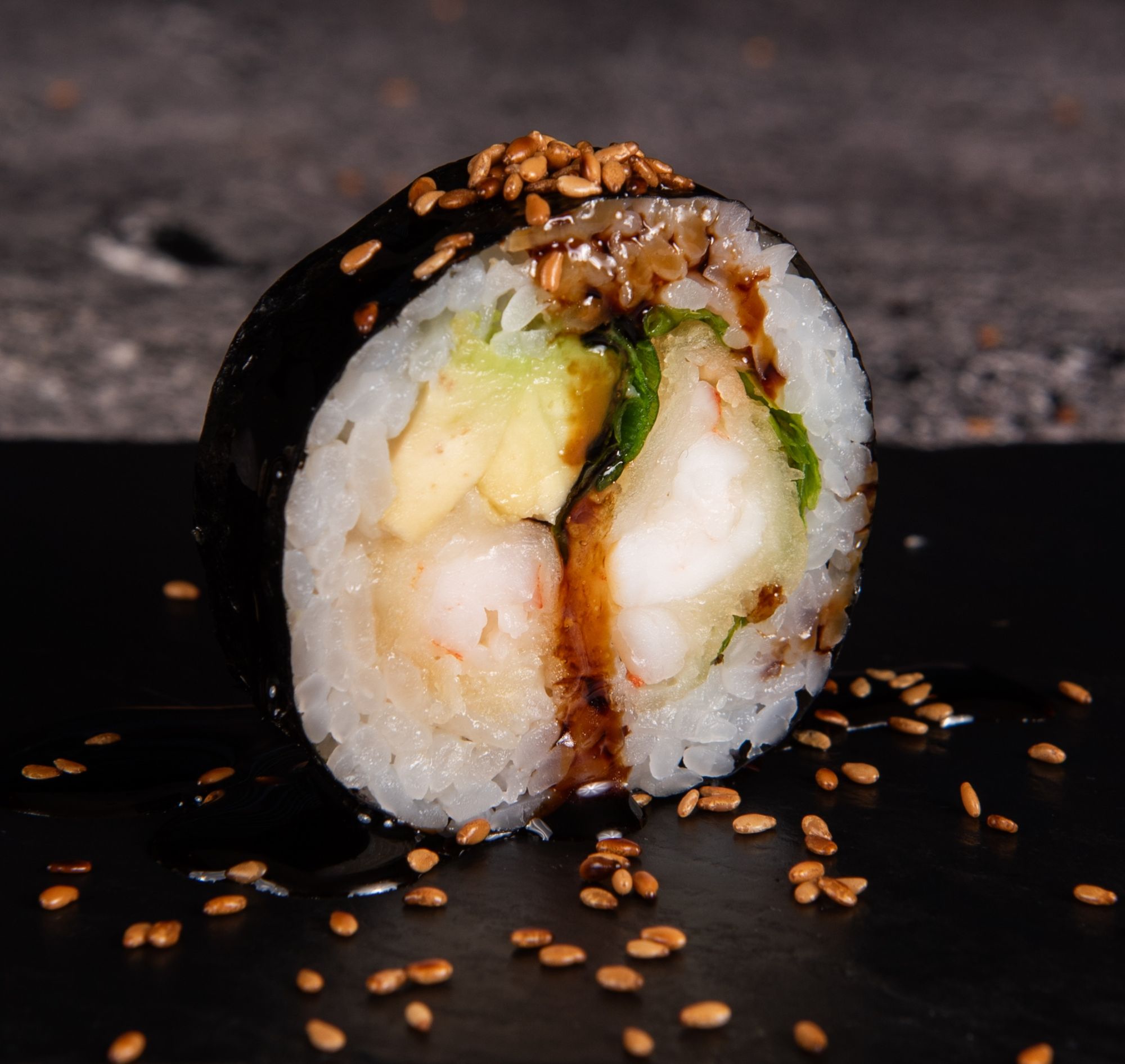 ogórek, awokado, majonez, sos kabayaki, sezam -