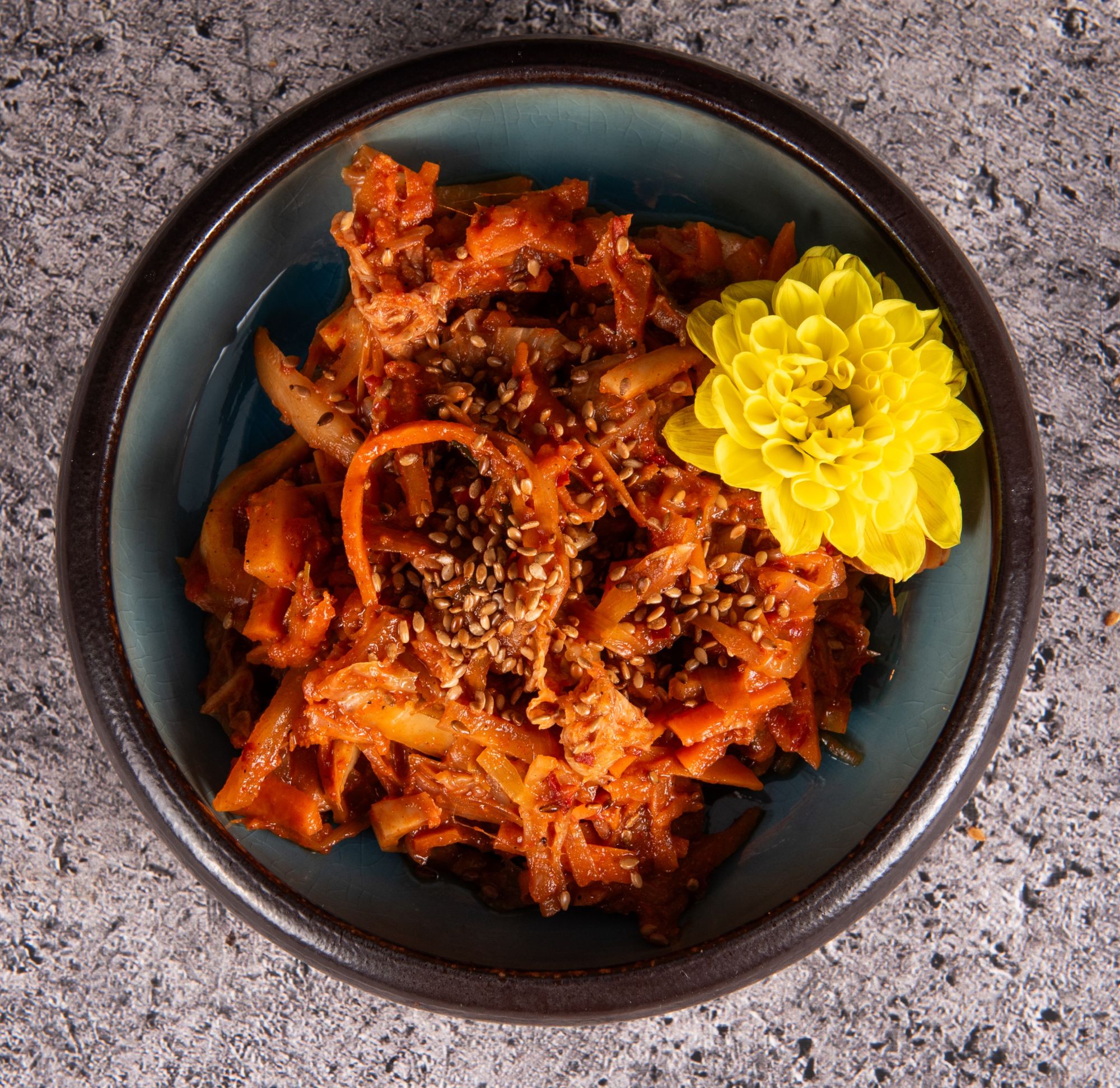 goma wakame, rzodkiew marynowana, sos ostry, sezam
