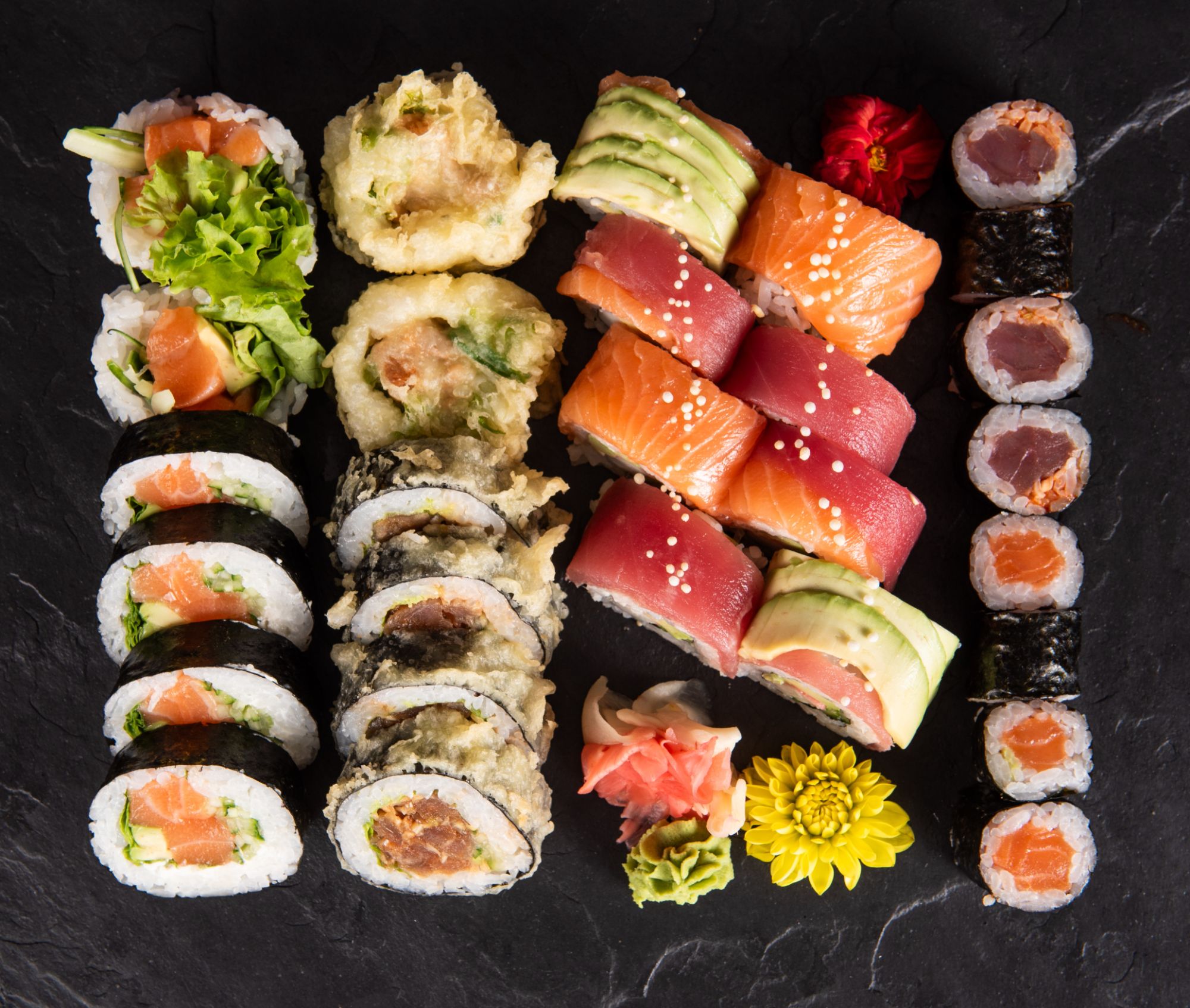 8x uramaki z krewetkami w panko oraz tatarem z łososia