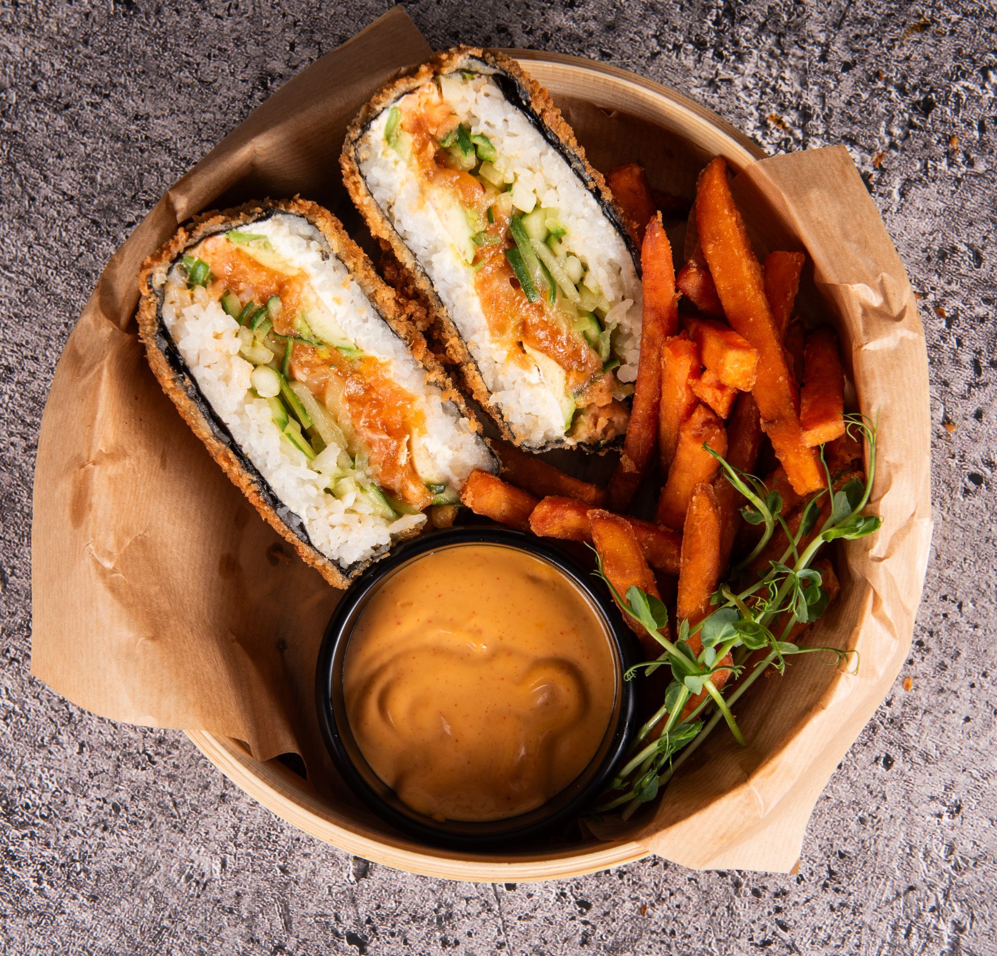paluszek krabowy, serek, dressing warzywny, sos kabayaki, sezam Opł. SUP pojemnik