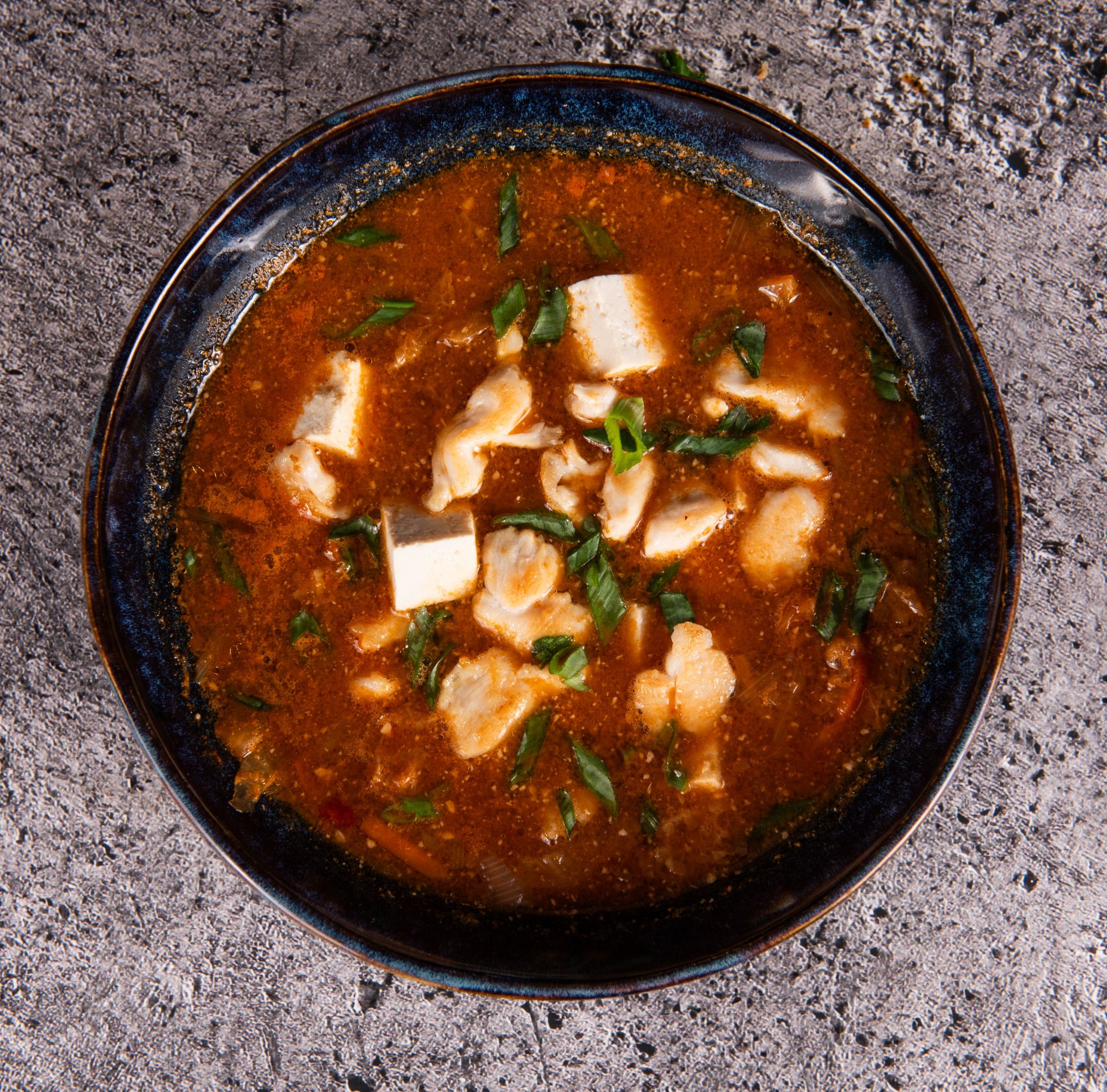 ogórek, rzodkiew marynowana, spicy mayo, papryczka chilli