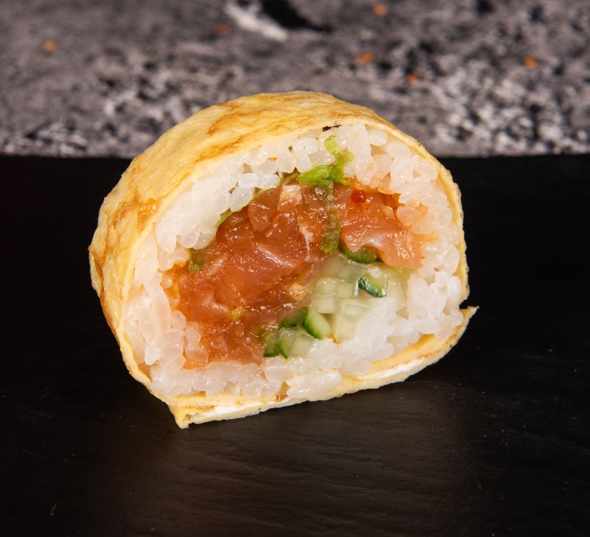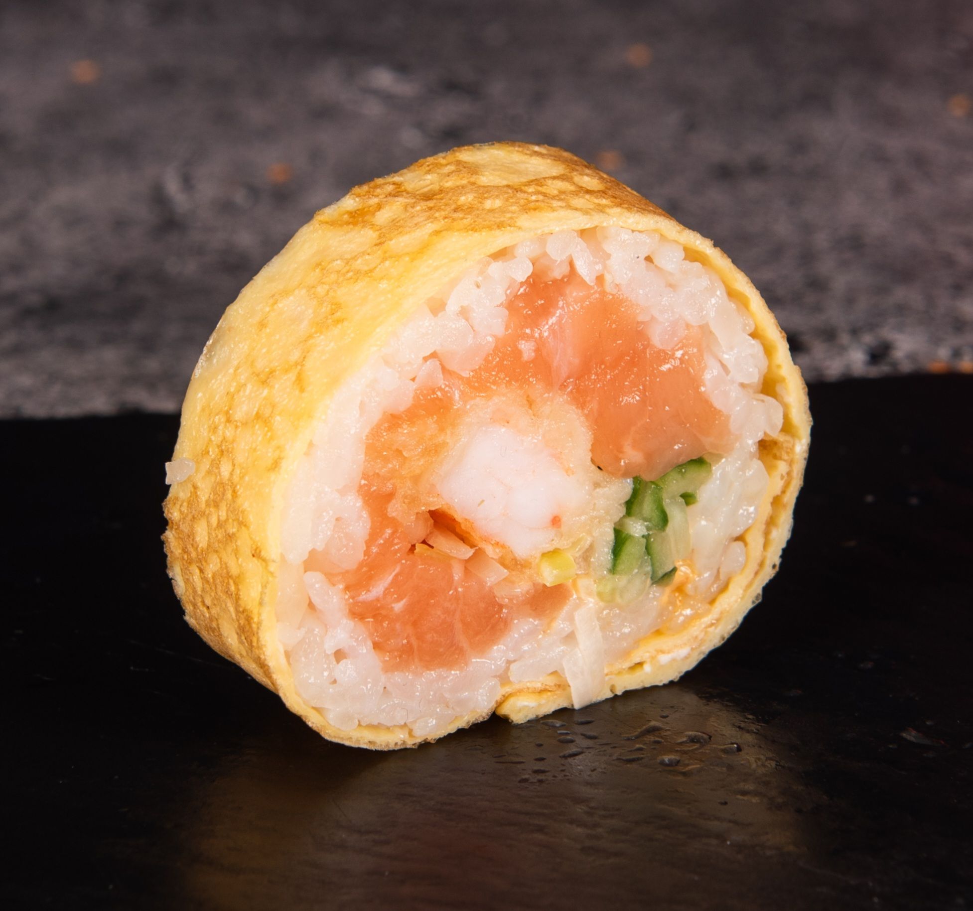 8x uramaki z tuńczykiem obłożone łososiem opalanym